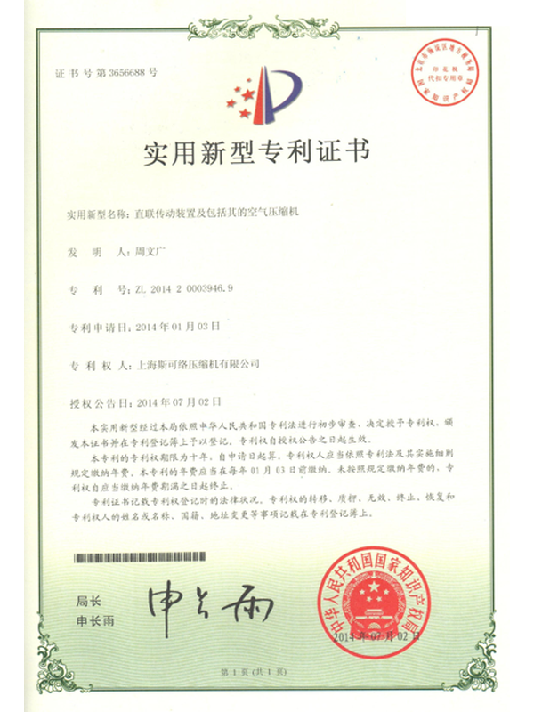 * 多年空压机研发经验,现已拥有多项专利、知识产权及产品检能效测报告。